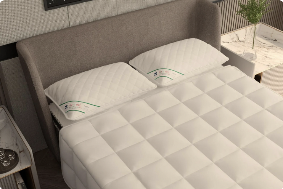 Țesătura exterioară este realizată din microfibră de înaltă calitate, plăcută la atingere și lavabilă la temperaturi de până la 95°C, asigurând igienizare completă chiar și după utilizări îndelungate.
